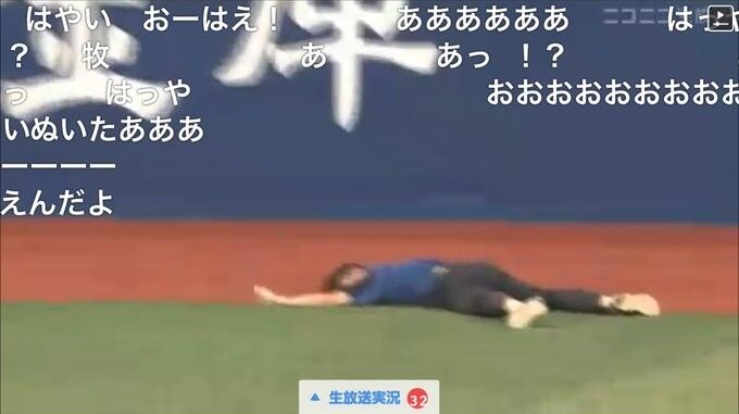 【ハマスタバトル】俊足・牧秀悟(ユニ)から受け継いだアンカー、転倒のショックで立ち上がれず