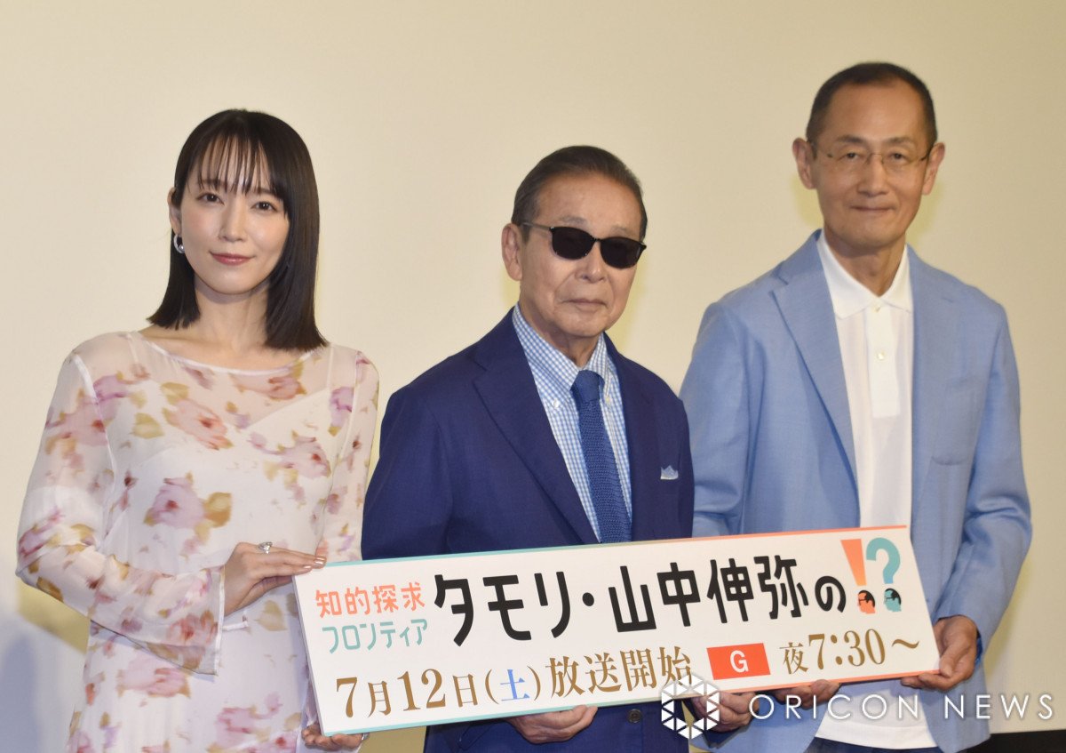 タレントのタモリ(79)、ノーベル賞受賞者の山中伸弥氏(62)、俳優の吉岡里帆(32)が3日、都内で行われたNHKの新番組『知的探求フロンティア タモリ・山中伸弥の!?』(総合 12日スタート 後7:30 隔月で放送予定)の記者会見に出席した。