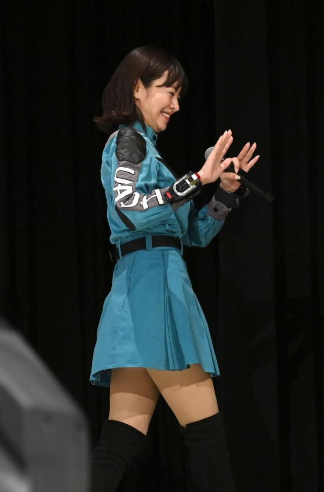 30年前のミニの衣装で登壇したさとう珠緒(撮影・園田高夫)