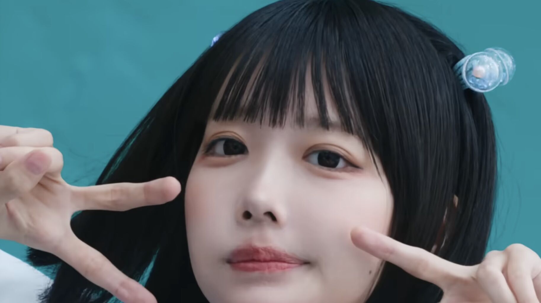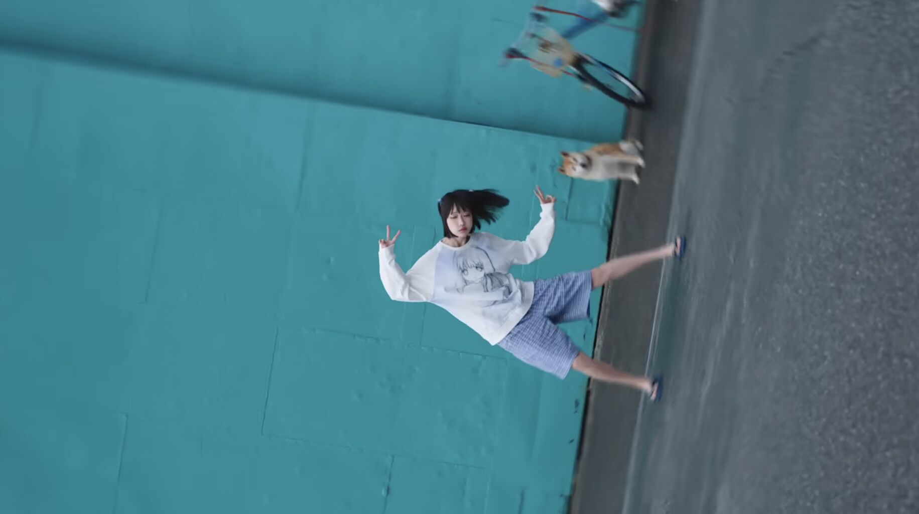 青い壁の前に立ってダブルピースをしているあのが、上半身を大きく左右に動かすのに合わせて、画面が左右に大きく揺れるという内容のCM。