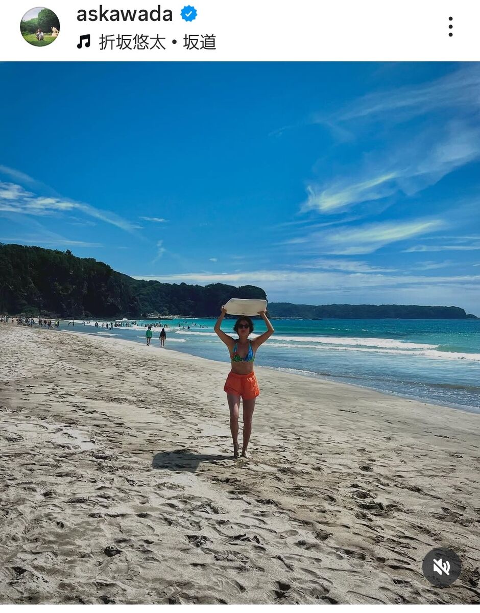 料理家で食育インストラクターの和田明日香さん(38)が、海を満喫する様子をアップした。