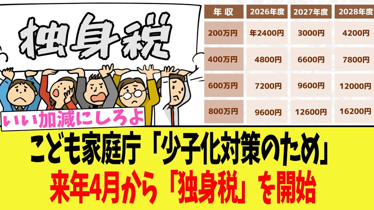 「独身税」、年収200万円の人は年4200円の支払いになる見込み こども家庭庁 ★3 [お断り★]