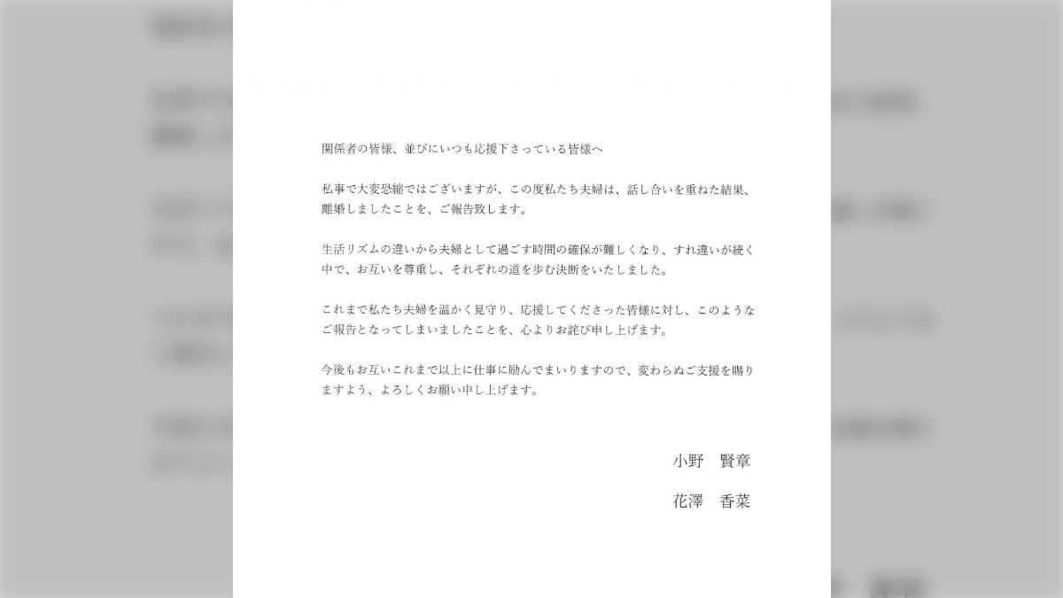声優・花澤香菜が離婚を発表「生活リズムの違いから」 声優の小野賢章と結婚5年で 声優の花澤香菜(36)が夫で声優の小野賢章(35)と離婚したことを14日、自身のインスタグラムで発表した。小野も自身のX(旧ツイッター)で発表した… (出典:スポニチアネックス) |
