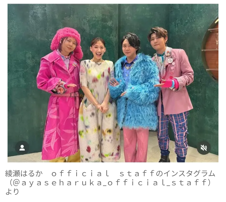 【朗報】綾瀬はるか ミセス新曲のMVに出演!MV衣装での集合ショットを披露www