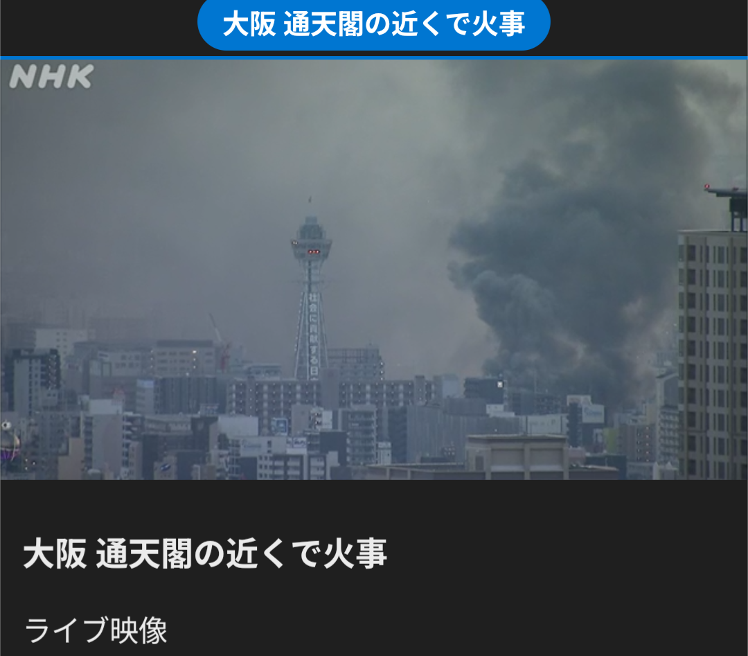 【速報】大阪・通天閣付近の商店街で火事 消防が消火活動中 – dメニューニュース 【速報】大阪・通天閣付近の商店街で火事 消防が消火活動中 dメニューニュース (出典:dメニューニュース) |