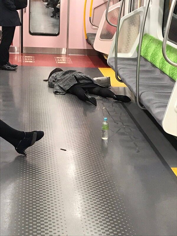 動画の投稿者は「中学生たちが地下鉄に乗ってきたと思ったらすぐに床に座り、寝そべった。ドアの前で20分」と説明を付けた。