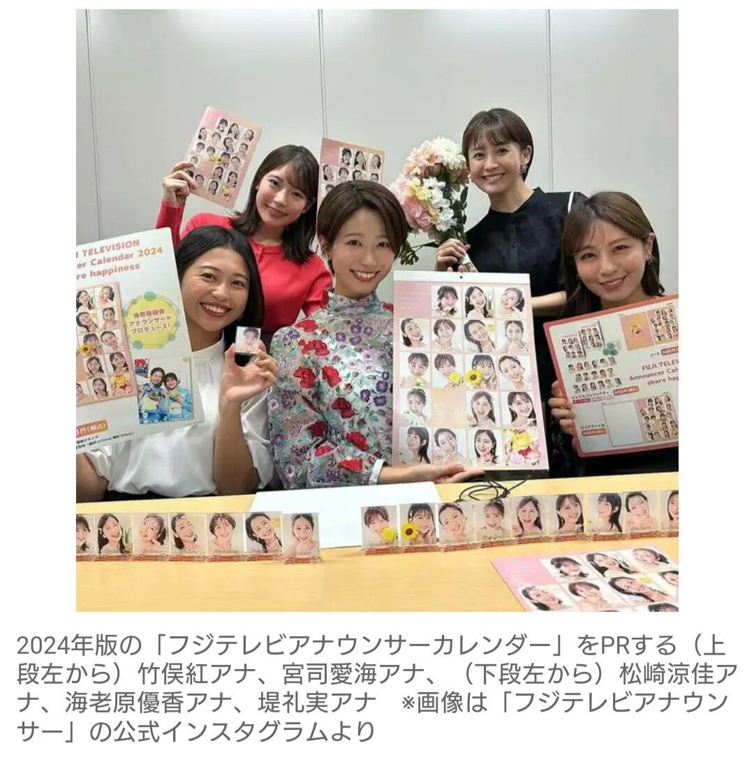 フジ“アイドル売り”カレンダーも物議…職業「女子アナ」が日本から消える日 中居問題で識者も次々意見 …ズ』もそうですし、他局が徐々に撤退するなか、フジテレビはいまだに“女子アナカレンダー”を出していますよね」(前出の制作会社関係者) ■“局アナ”は特有… (出典:) |