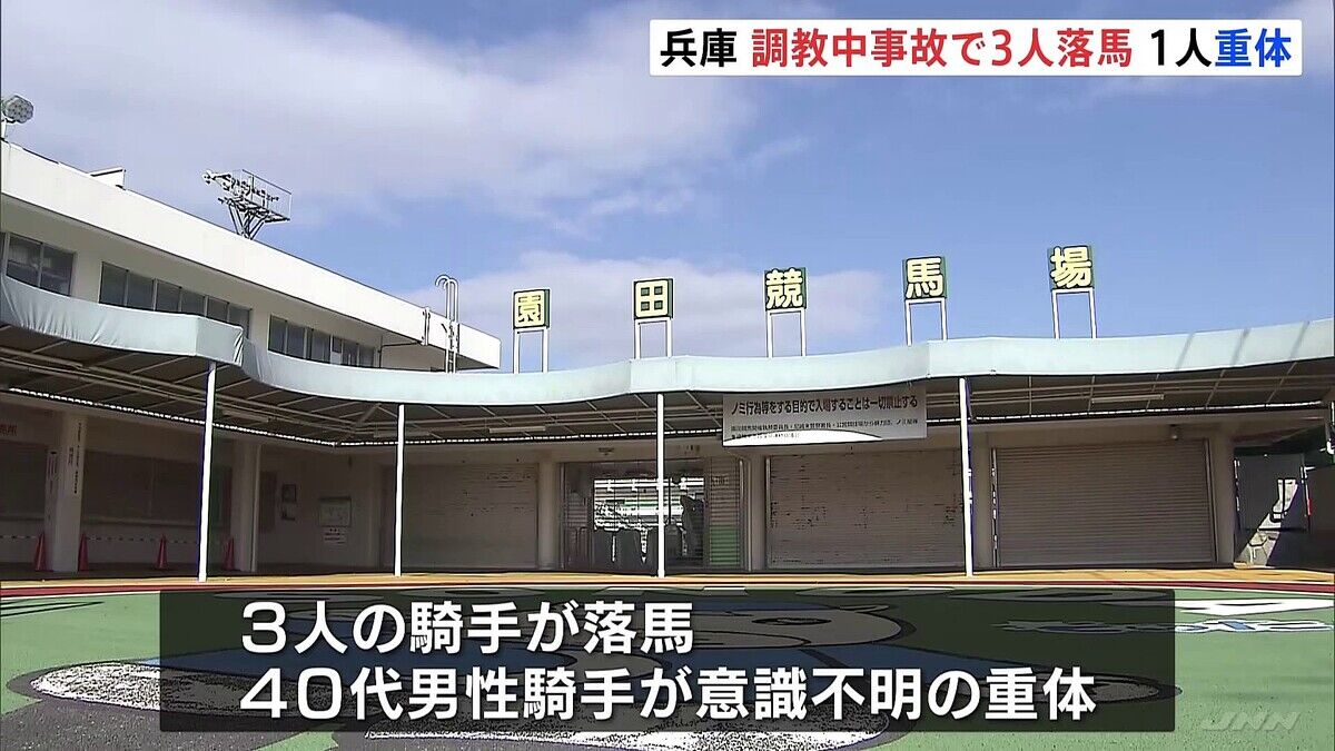 兵庫県尼崎市田能2丁目の園田競馬場で13日午前6時ごろ競馬場の関係者から「40代の男性が落馬した」と119番通報があった。