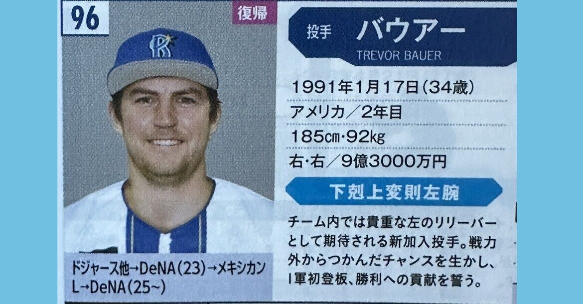 バウアー、下剋上変則左腕と紹介される…プロ野球選手名鑑2025【ベースボールタイムズ】