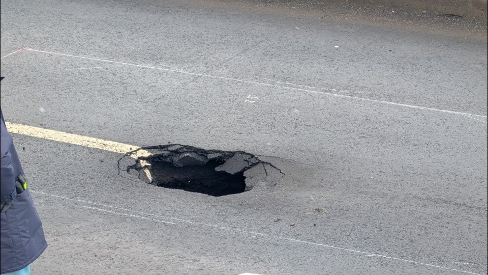 札幌市清田区の道道「真駒内御料札幌線」で50cm四方・深さ約2mの陥没が発生。現在、付近の道路は通行止めに。幸いケガ人はなし。原因は調査中。