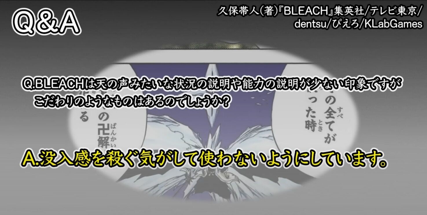 【BLEACH】作者「没入感を殺ぐ為ナレーションは使わない」