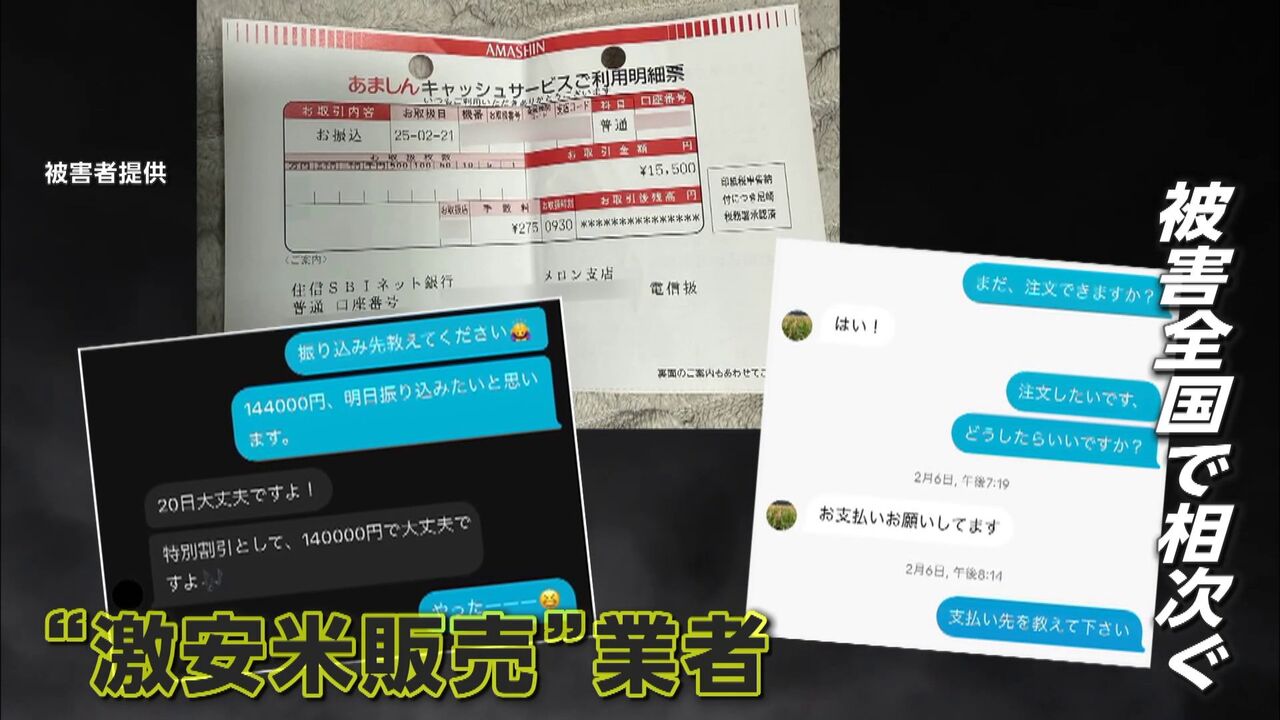米の価格が落ち着くかどうか、注目が集まる中…“米の激安販売”をうたった業者による被害が、全国で相次いでいて、鹿児島県在住の女性は「13万5000円支払ったけど、一向にお米が届かない」といい、岡山県在住の女性も「やっぱり詐欺に遭っていたんだっていうのが分かったんです」と話す。