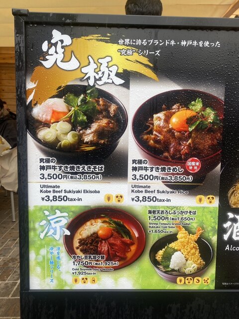 提供するのは兵庫県姫路市の「まねき食品」。ふだんはJR姫路駅構内で和風だしに中華麺という独特の「えきそば」を販売しているが、今回は万博特別版「究極の神戸牛すき焼きえきそば」として、バージョンアップして販売されている。同店関係者によると高額になった背景は、その贅沢な食材にあるという。