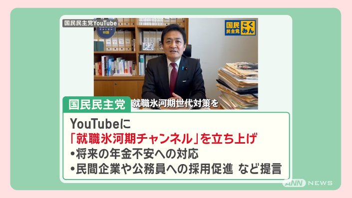 国民民主党は、YouTubeに『就職氷河期チャンネル』を立ち上げ、対策を発信しています。