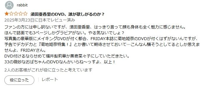 何故か須田のDVDが出てきたという被害が多発し買った人がブチ切れまくってる模様