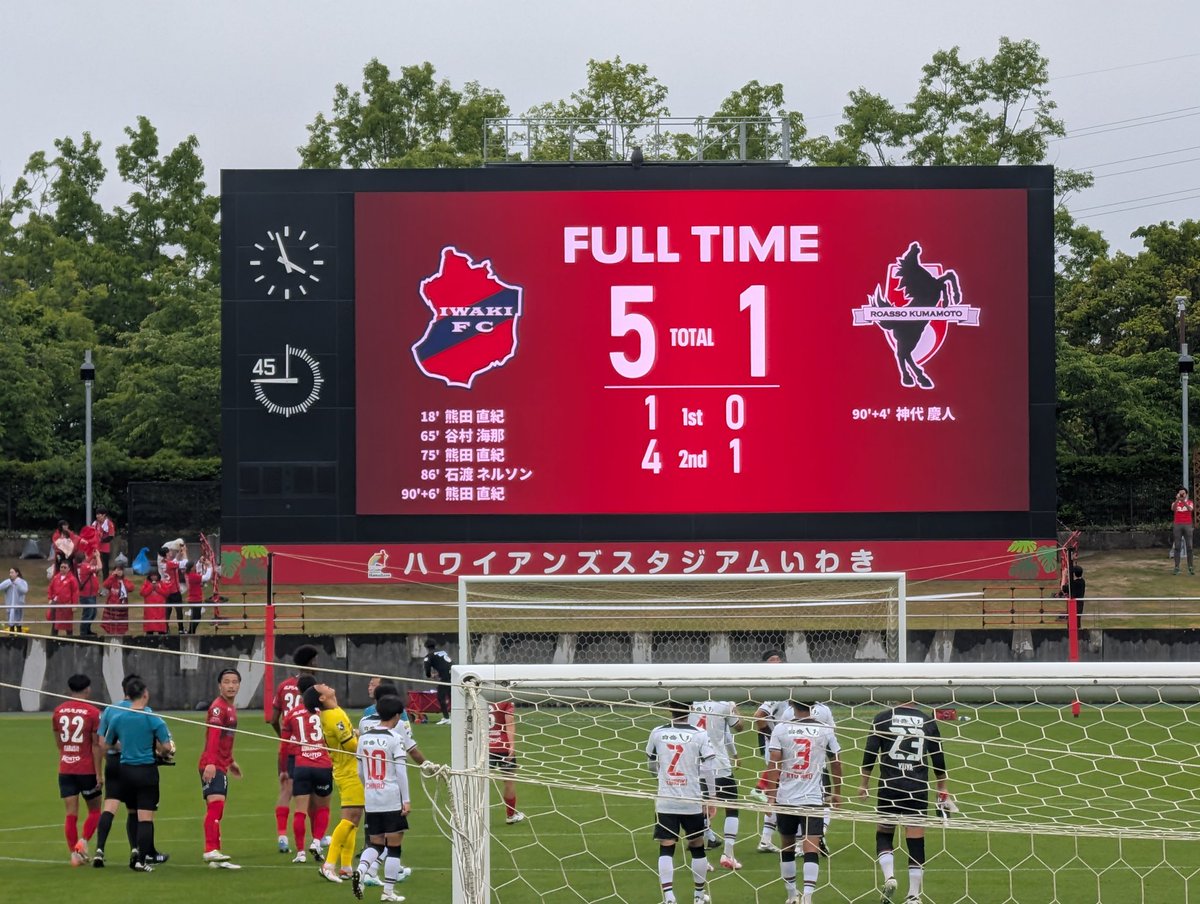 いわきFCが熊本に5-1で勝利。熊田直紀がバイシクルシュートで先制、2得点を挙げる活躍。
