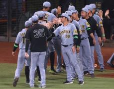 阪神 藤川監督「よく大山のホームラン一本をみんなで守り切った」9回に石井起用の意図は… …スコンF) 日本ハムとの両リーグ首位対決で交流戦の初戦を制した阪神の藤川監督は、流れが行き来する中で6回に飛び出た大山の先制ソロの1点を守り切った勝利に目を細めた。 (出典:) |