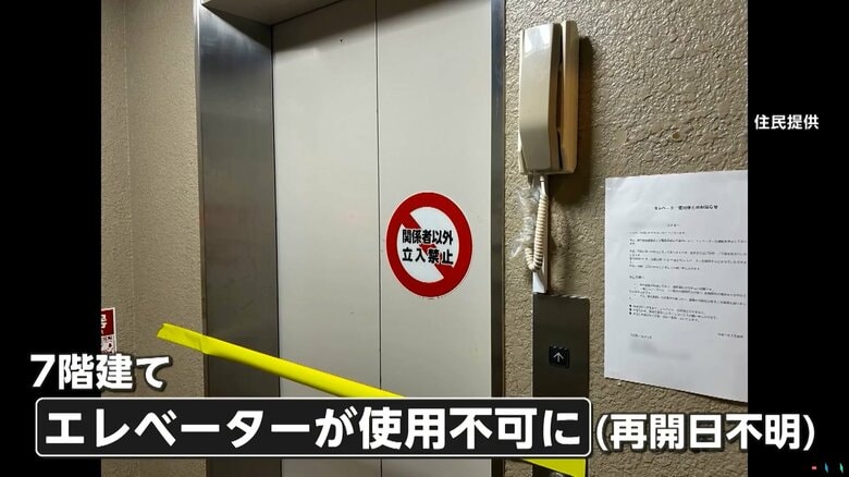 7階建てのマンションのエレベーターが突如使えなくなり、再開日は不明と言われたという。