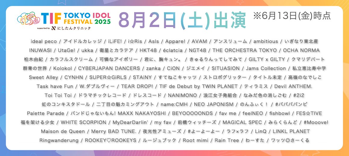 「TIF2025」出演日発表キタ━━(゚∀゚)━━!!