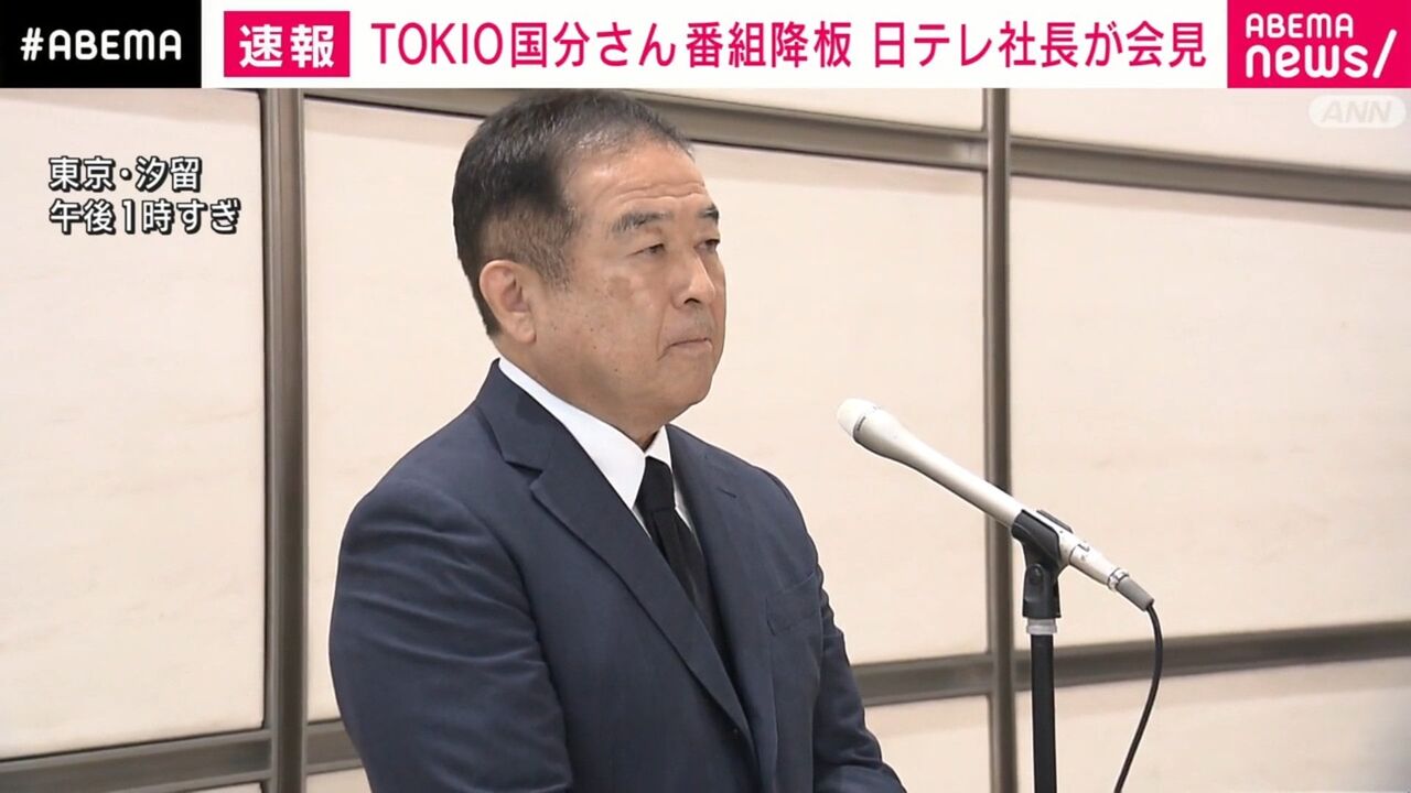 日本テレビの福田博之社長は20日、TOKIOの国分太一(50)に過去にコンプライアンス上の問題行為が複数あったとして、「ザ!鉄腕!DASH!!」を降板することになったことについて、記者対応に応じた。しかし、記者からの質問に対して、「申し上げられません」を連発。問題行為の核心には触れなかった。